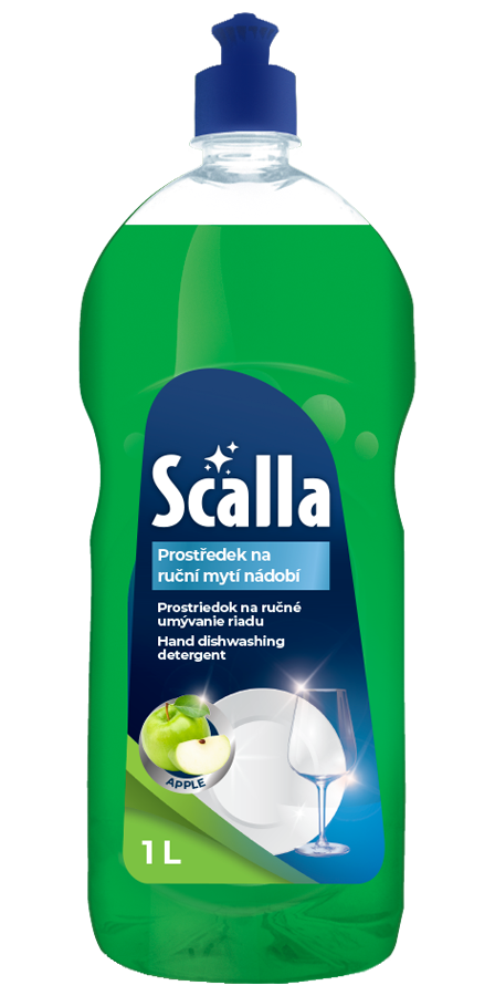 Deterdžent za ručno pranje posuđa Scalla je ekonomičan i efikasan u uklanjanju prljavštine. Pažljivo odabrana kombinacija aktivnih sastojaka omogućila je efikasno pranje posuđa bez iritacije kože ruku.