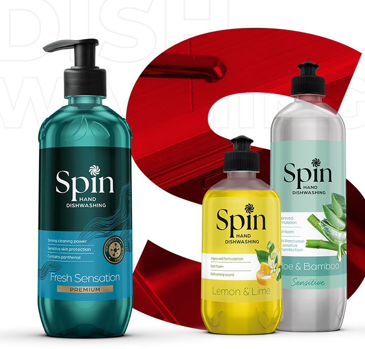 Korišćenjem najnovijih saznanja i visokokvalitetnih sirovina, nastao je Spin deterdžent za pranje posuđa sa mnogo većim performansama od dosadašnjih deterdženata za pranje posuđa. Spin deterdžent za pranje posuđa je usmeren na najlakše, najkvalitetnije i najbrže pranje posuđa, što podrazumeva: